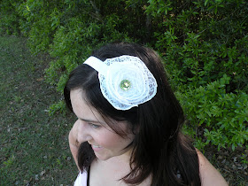 I clipped the lace flower to the elastic where I glued the two pieces together and voila, here it is!